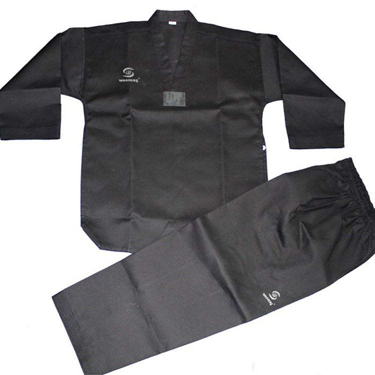 O uniforme WOOSUNG Black Taekwondo incorpora o charme único do Taekwondo em preto clássico. Como uma fábrica de uniformes de Taekwondo na China, nos especializamos em fornecer soluções de vestuário de alta qualidade para treinamento, sparring e performances.