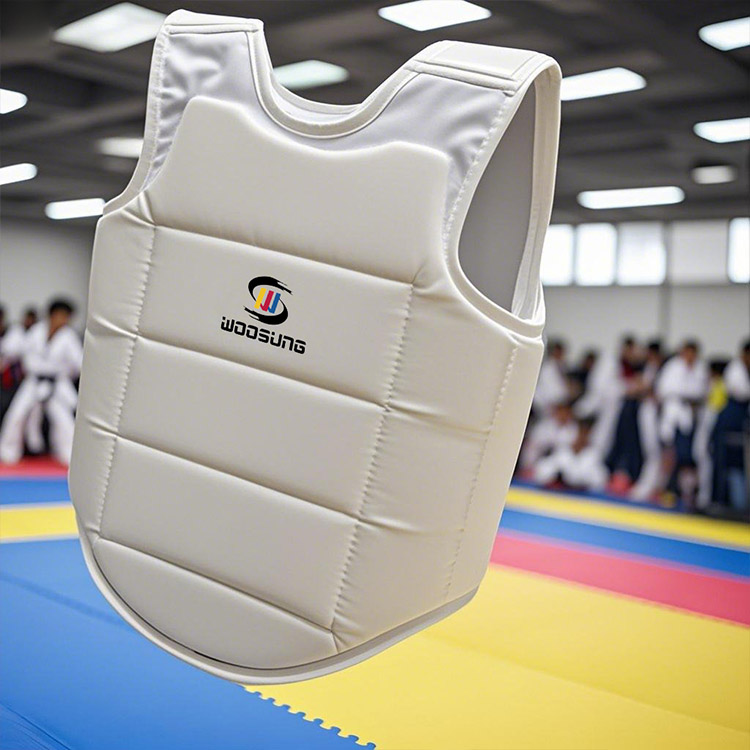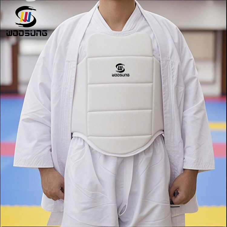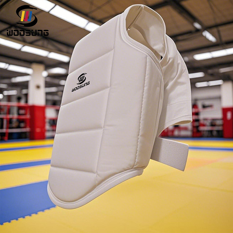 A WOOSUNG considerou totalmente as características do formato do corpo feminino no design da proteção torácica PU Karate: