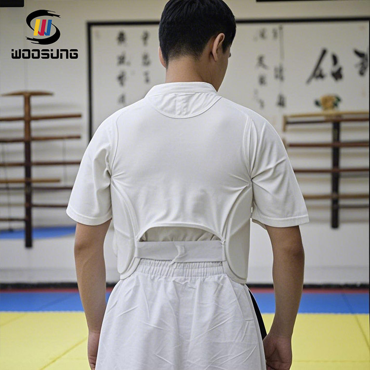 O desenho doWOOSUNGPU Karate Chest Guard é inspirado na estrutura simples e nas proporções dos trajes tradicionais de artes marciais. Em termos de aparência, o estilo geral é contido e limpo, não perseguindo formas exageradas, mas enfatizando o profissionalismo e a continuação do espírito das artes marciais.