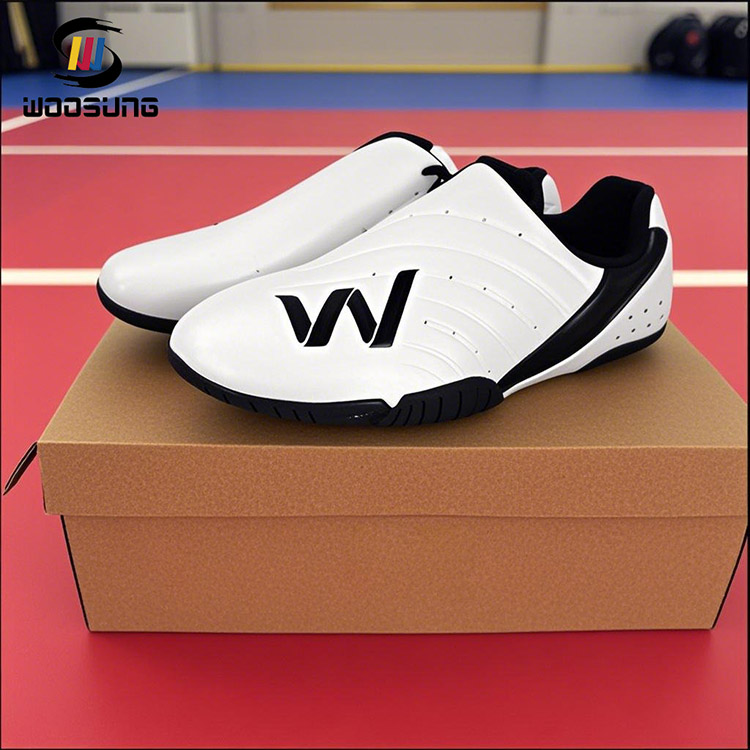 WOOSUNG®Os sapatos PU Karate são feitos de material PU (poliuretano) de alta qualidade, equilibrando design leve, flexibilidade e durabilidade.