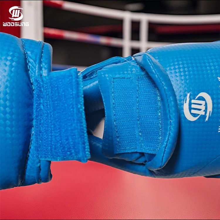 A aparência apresenta as clássicas cores vermelho e azul das competições de caratê, acentuadas com bordados brancos “Wu” (artes marciais), mostrando a identidade profissional do atleta. Este não é apenas um Shin Guard Karate até o joelho, mas uma extensão da sua confiança e personalidade no tatame de competição.