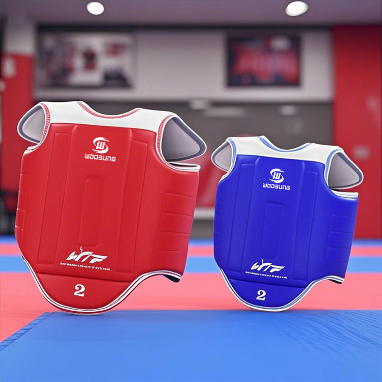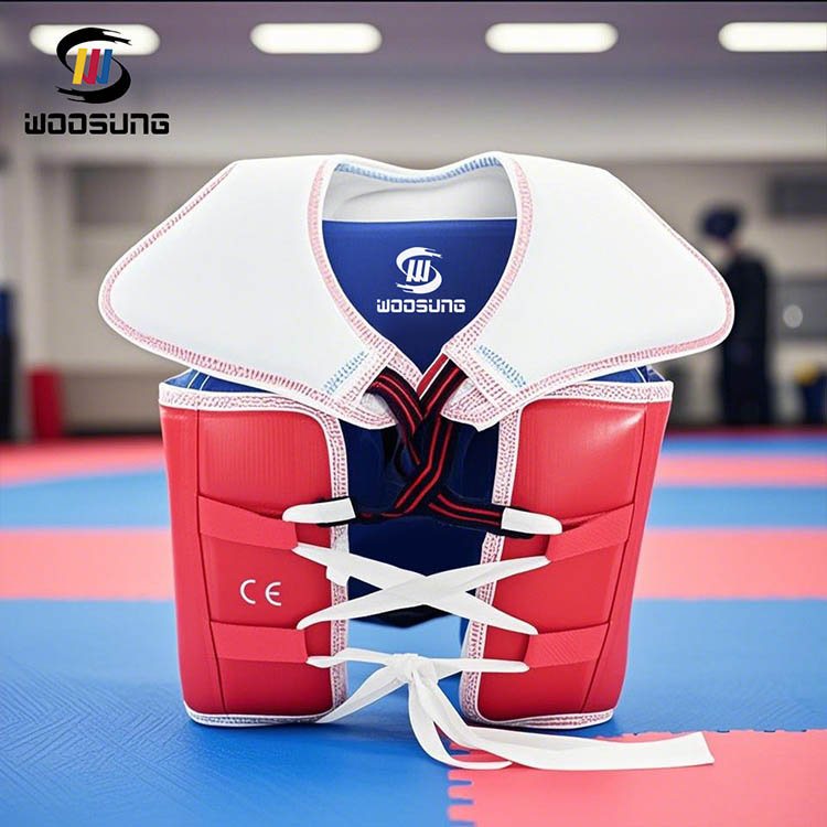 Proteja nossas áreas vitais como tórax, costelas e abdômen. Taekwondo é uma arte marcial de ritmo acelerado e forte. Essas partes estão sujeitas a lesões durante chutes e golpes. Os protetores de tórax da China WOOSUNG são feitos de materiais de alta elasticidade, resistentes a impactos e amortecimento, que podem dispersar efetivamente a força de impacto e reduzir significativamente as lesões, protegendo nossos corpos.