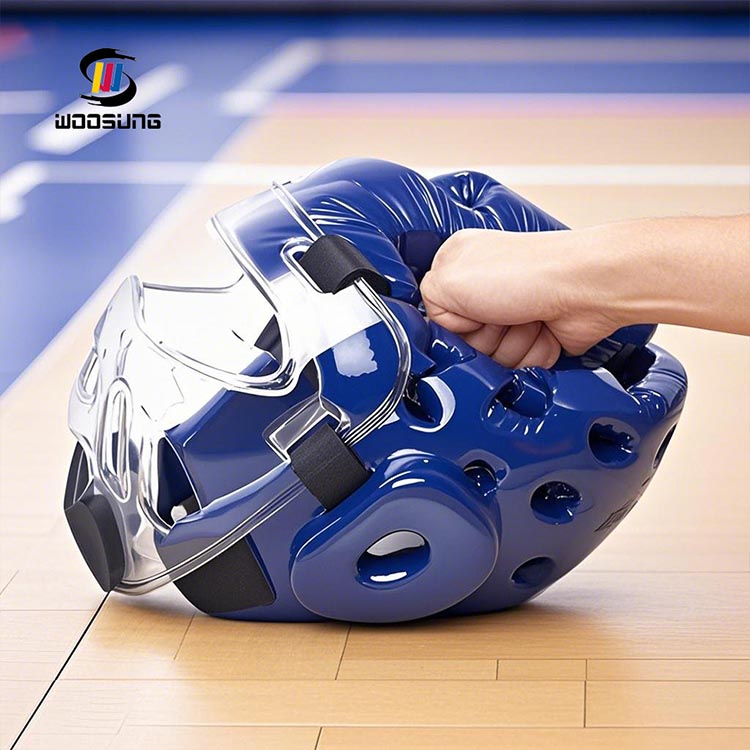 Além do polimento, as bordas do protetor de cabeça de Taekwondo com máscara são aprimoradas ainda mais usando tecnologia de reforço profissional. Isso geralmente envolve materiais de reforço de alto desempenho ou processos especializados para aumentar a resistência e a tenacidade da aresta de corte.