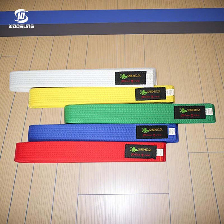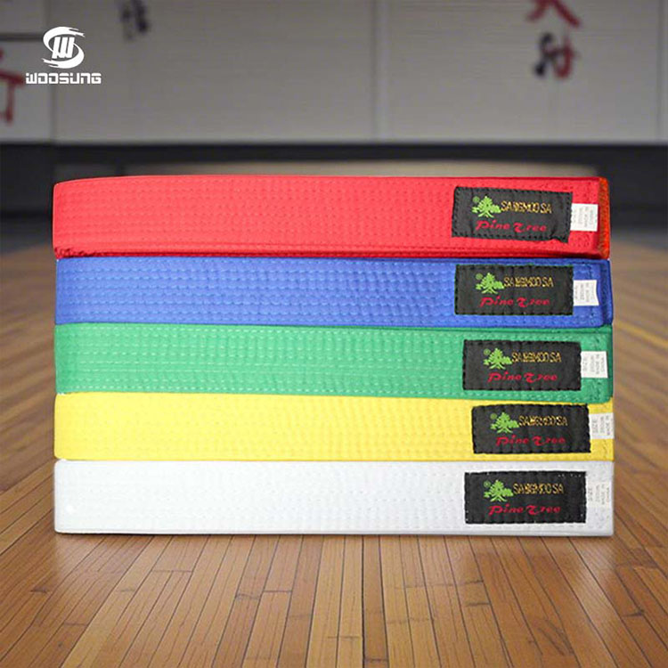Os cintos de cor única WOOSUNG Taekwondo usam algodão puro resistente e durável ou tecidos mistos, como um "guardião pessoal", fabricados através de vários processos de tecelagem: